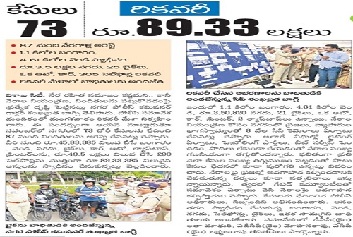 The Visakhapatnam Police Commissionerate is presently headed by Commissioner of Police, assisted by Joint Commissioner of Police, Three Deputy Commissioners of Police, for L&O Zone — I, II, Crimes, Four Addl.DCsP, 18 ACsP.....